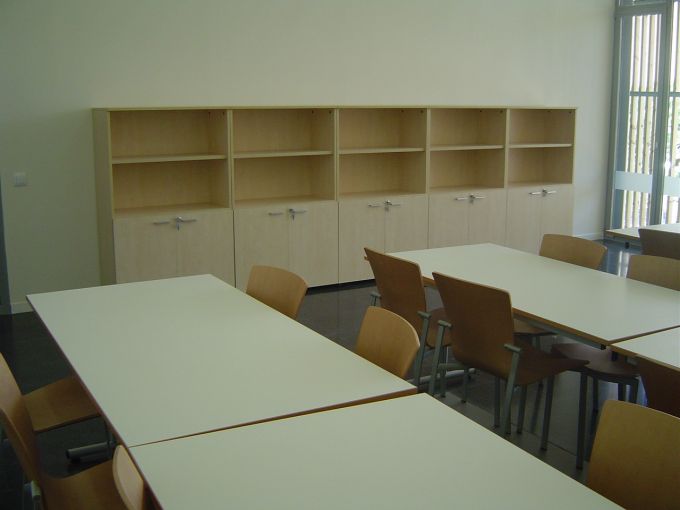 En este proyecto KAUSA ha realizado todo el suministro de mobiliario polivalente para el Casal, con mesas abatibles con ruedas y sillas de madera apilables. Para los talleres se han realidazo bancadas de trabajo a medida con sobre de fenólico para mayor resistencia y estanterías modulares. Además todas las taquillas y mostradores de atención de han realizado a medida.